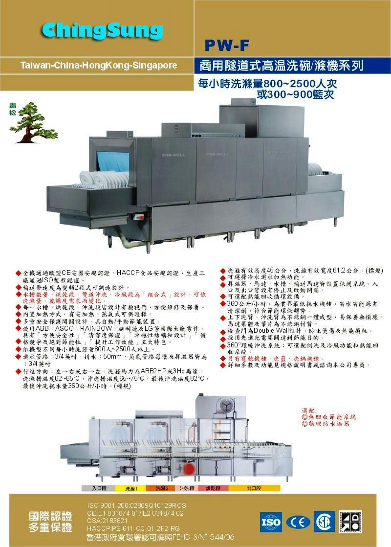 商用隧道式高溫洗碗/滌機系列 PW-F